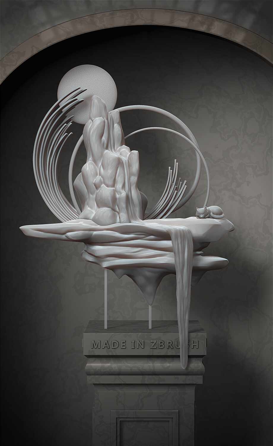 I was ill prepared i guess, tried learning zbrush with the 14 day trial to get ready for the sculpt-off, a crashcourse with some spicy tutorials, but… to no avail. I totally blacked out, mind just went blank so decided to just do some freestyle improvisation stuff, damn… the last stretch before submission deadline… thought it would be as easy as just importing/exchanging a tool onto the 'your sculpt here’spot in the chosen scene, but i just couldn’t get it to work, out of time! Recap on my twitch: twitch.tv/mrnxgbrl. Thank you Maxon/Pixologic crew for another opportunity and yet another learning experience