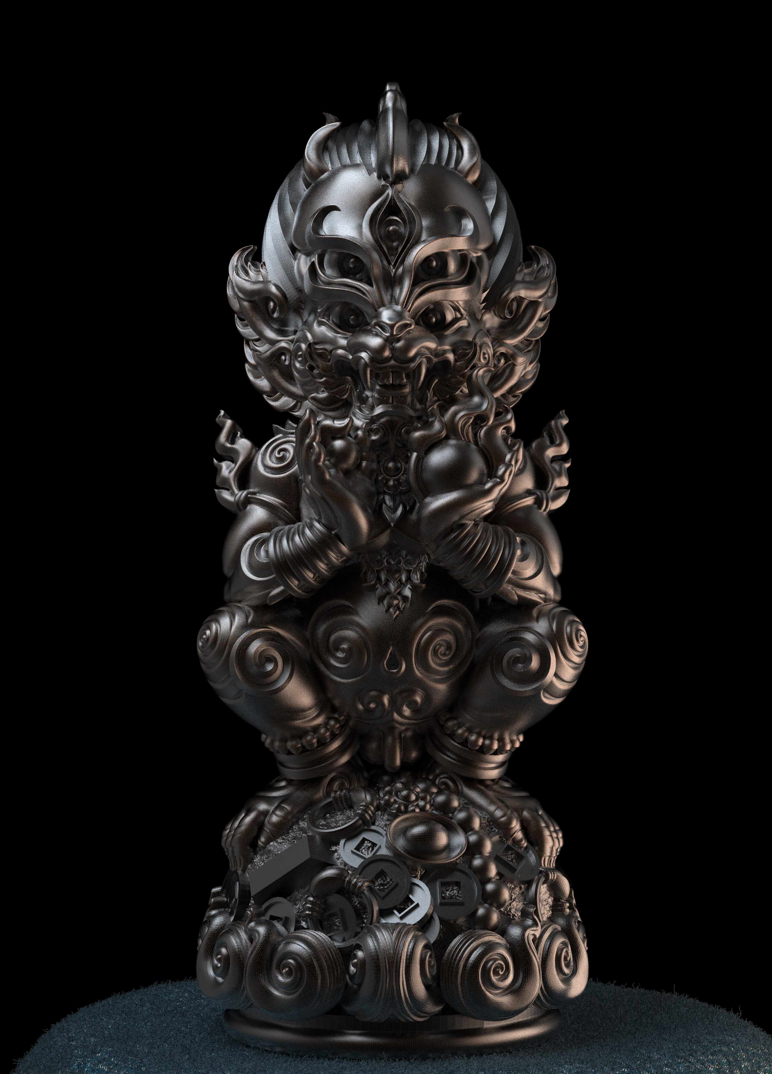 Four ears and five eyes is the name of a kind of legendary monster in northern Thailand. It looks like a fat black bear. It has two pairs of ears and five eyes, it feeds on hot coals and turns it into gold.