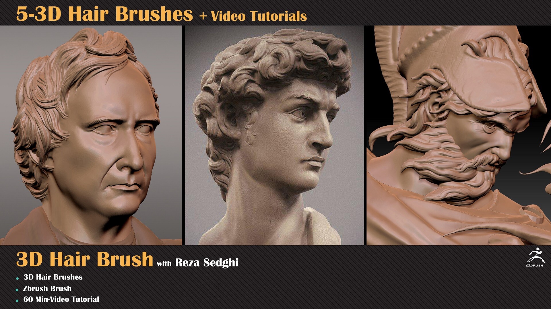 This Product includes 5 Hair Brushes for ZBrush and a Video Tutorial on How to
