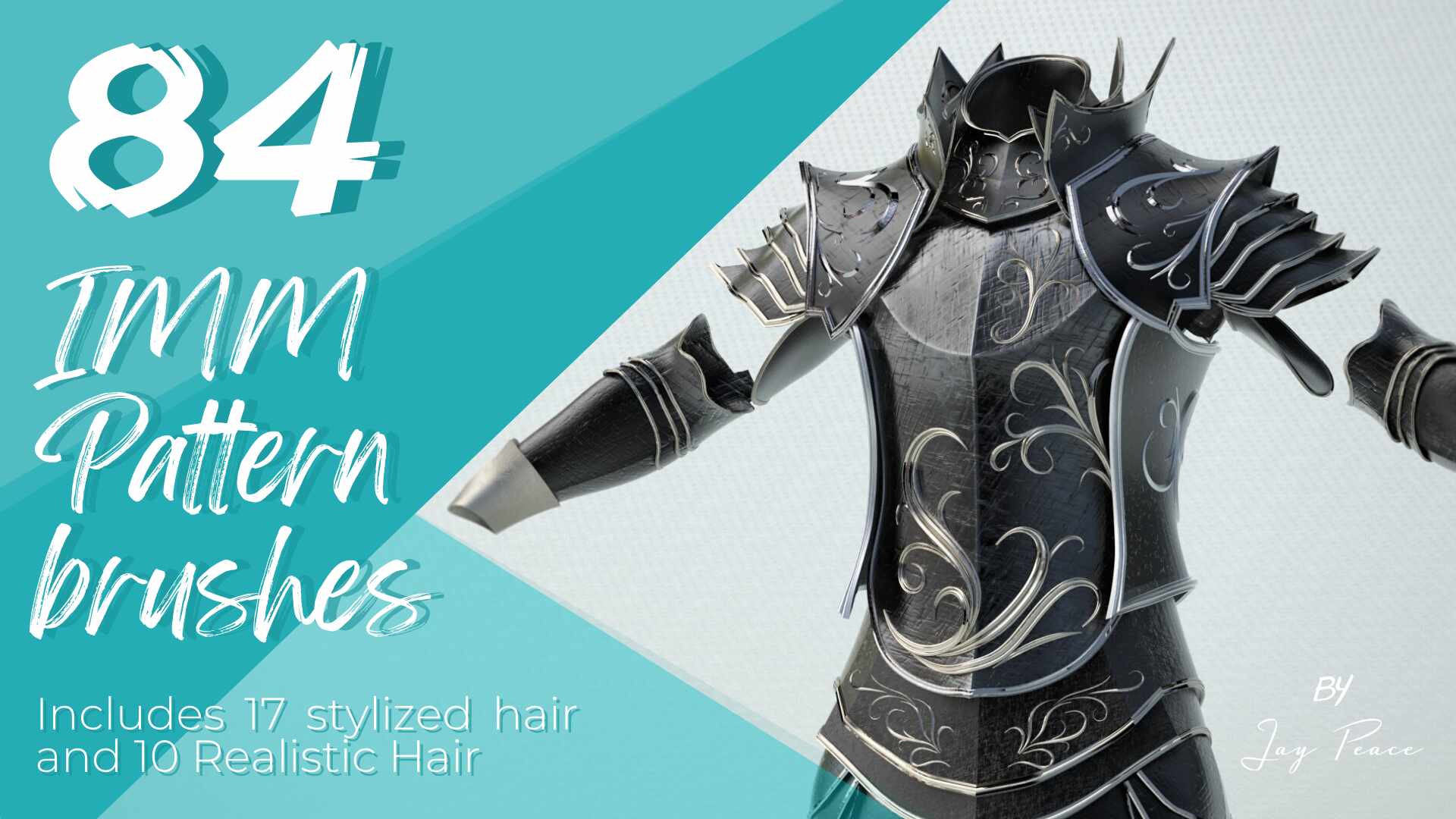These are unique 84 IMM Pattern brushes to decorate your models. If you need your are armors, helmets, shield, furniture, clothes, jewelries or characters to be decorated with patterns in ZBrush, you will be happy to have these brushes! Moreover, this kit includes IMM of Stylized and Realistic Hairs that will be perfectly match for high level stylized characters and more. Also you can make even more variations by tweaking it via Brush and Stroke menus.