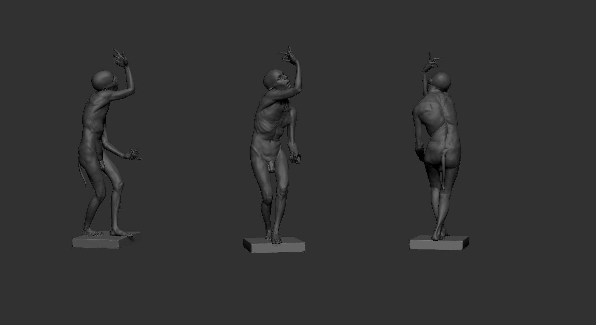 Anatomy study I did based on photo of man with tail. I am fan of Richard MacDonald work , so I tried to mimic that red gradient from his work .