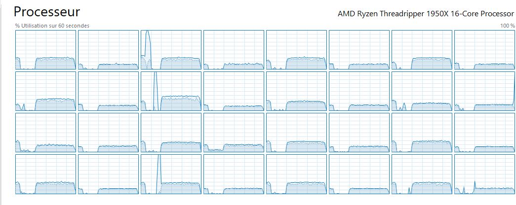 I never waited 20 minutes for it to finish though, neither did I check how many threads were being used at those particular problematic moments.
