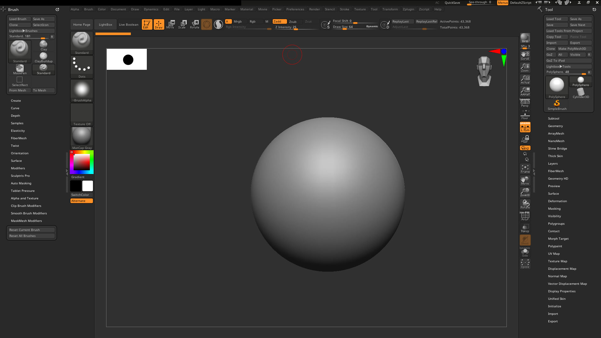 default zbrush interface