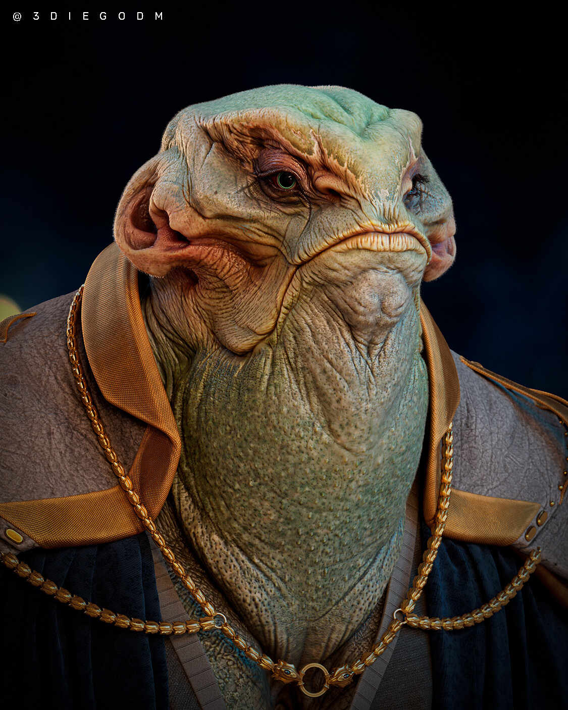 It’s been a while since I started experimenting with alien designs. I’m usually more interested in the general shapes, but in this case, I’ve been testing new alphas to generate realistic “non-human” skin. Hope you like the result!