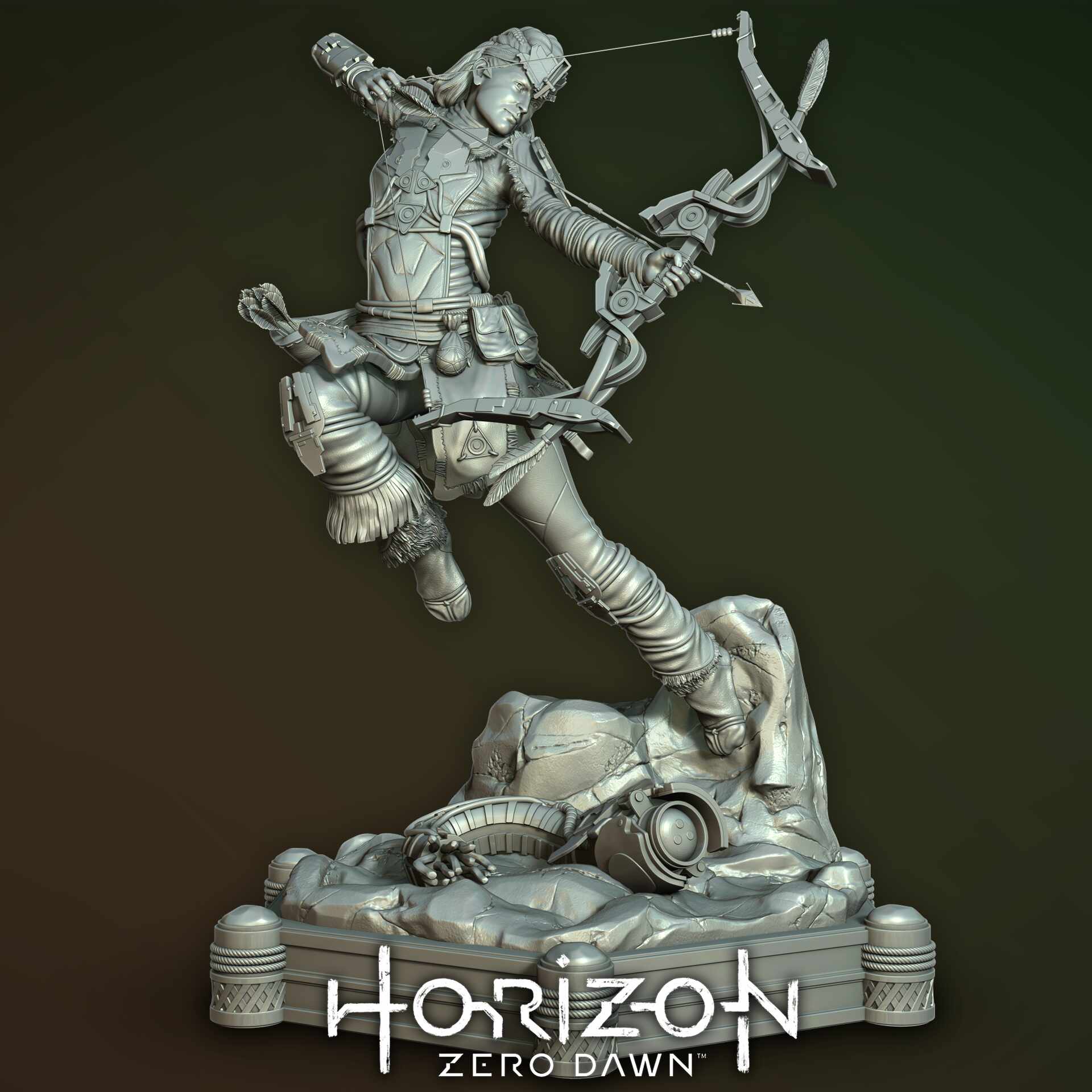 Aloy Fan Art model (with Shield Weaver armor) realized during the Daniele Angelozziโs collectible sculpture course.