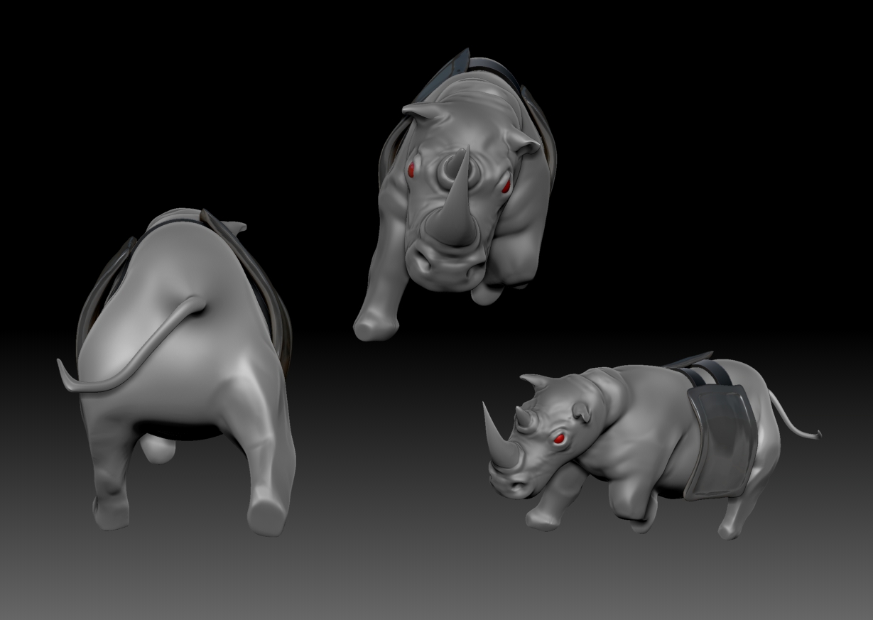 Here are my first lame learning results (the rhino is just at its beginig, i was struggling with how to make skin folds, and pretty much got them somehow proper only at the front view - the side view folds are real mess right now. Im planning to add armor and cannon on top of him, and maybe some orc/dwarf somewhere. Imp on the other side, was my just training dummy to learn the most basic brushes - hence he is kind of a war victim, dont judge him to harshly :P)