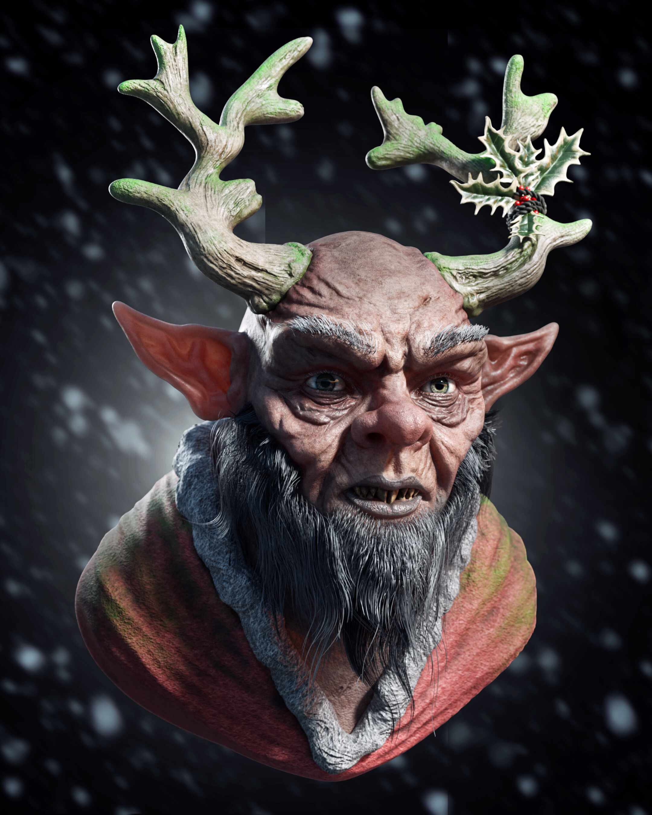 This is my final piece for the discord Pablander Santa challenge. I wanted to make a creature from our ancient past that people used to see creeping around the dark forests. Over time people passed down the stories of this wood creature and this is how we came to the modern Santa. He was also mistaken for using reindeer as his horns looked very similar.