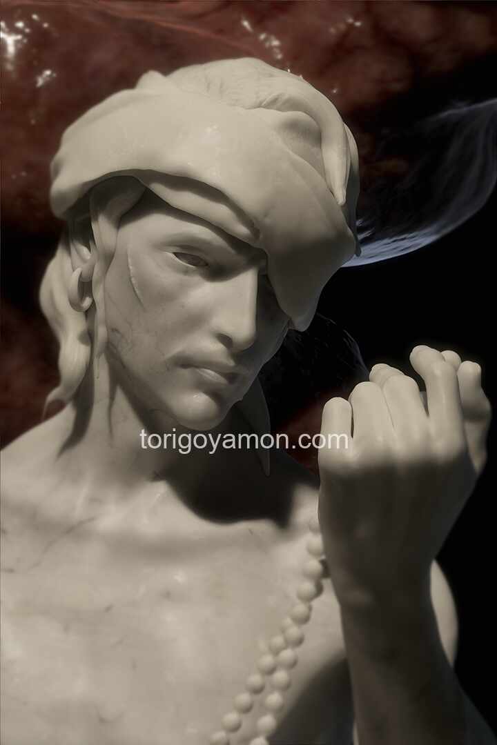 I still struggle with the rendering part of the process, but I managed to give the sculpture a marble look while giving the base a slippery look.