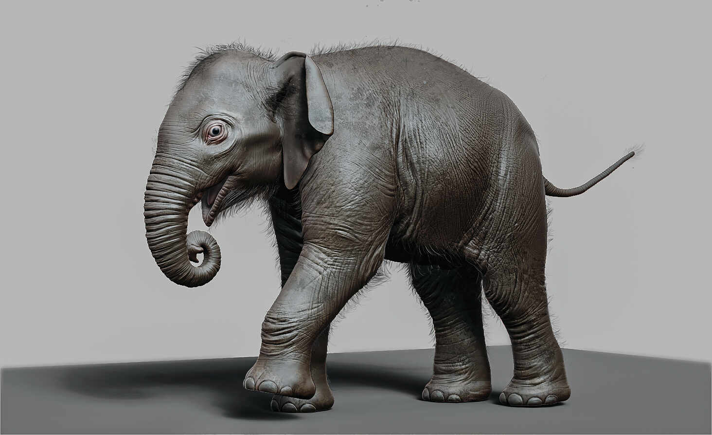 Hello everyone, the elephant is sculpted in Zbrush. This is a sculpture made by Mavis to study the nature and anatomy of elephant skin. :elephant