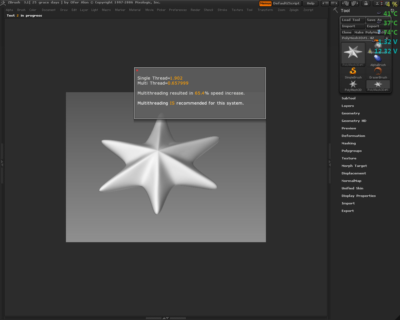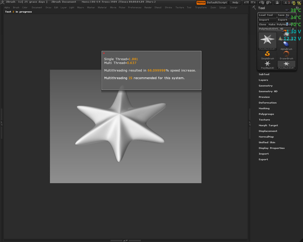 i posted that screen shot up above a few weeks ago when i got this machine (one im using to write this) overclocked to 3.8 and stable (this is my core i7 machine)…running vista 64 and zbrush.
