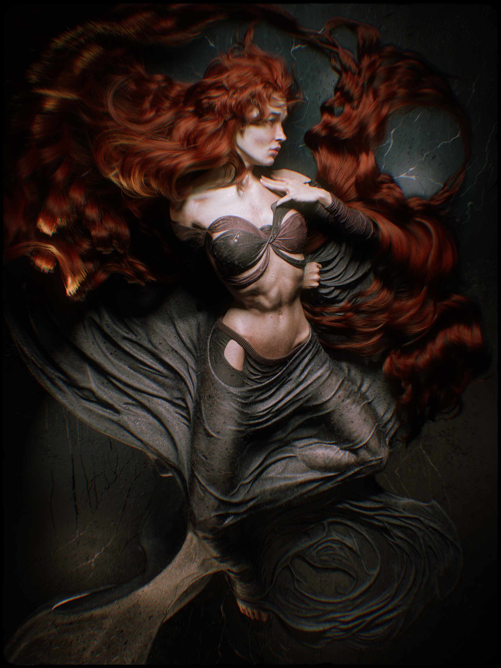 3D - cloth sculpted by hand, rendered in marmoset, hair in xgen. This one is not optimized but I used the Metal-rough workflow directed at games