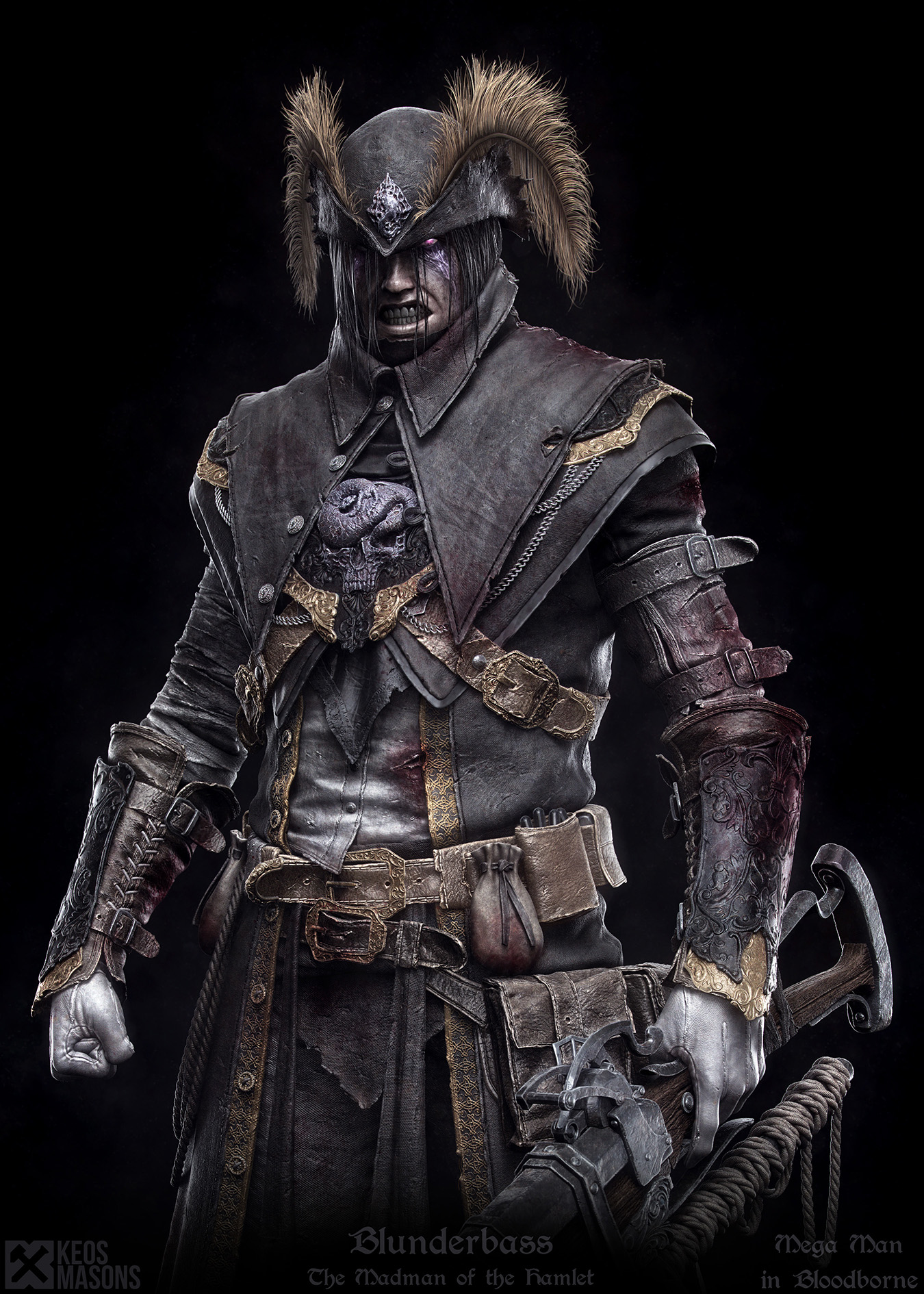 Yes is closest affiliation would be the Powder Keg because of the Harpoon launcher. But I think on top of that, my biggest idea was that he would be a Hunter that had to deal with the Hamlet (like Lady Maria) and by communing with the Great Ones (of artefact from them brought to the shores) reached a very high Insight that drove him to be mad and turn on the Hunters instead (if you look close enough, you’ll see his eyes are Blood-Drunk.