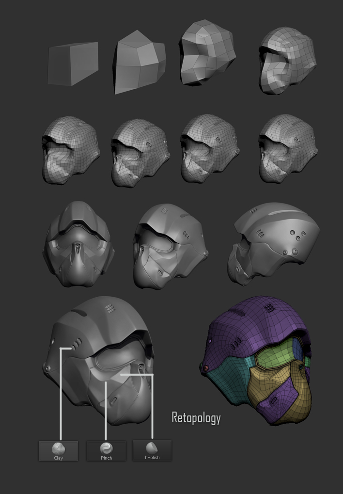Here´s a little bit of the process I used to make the helmet in ZBrush.