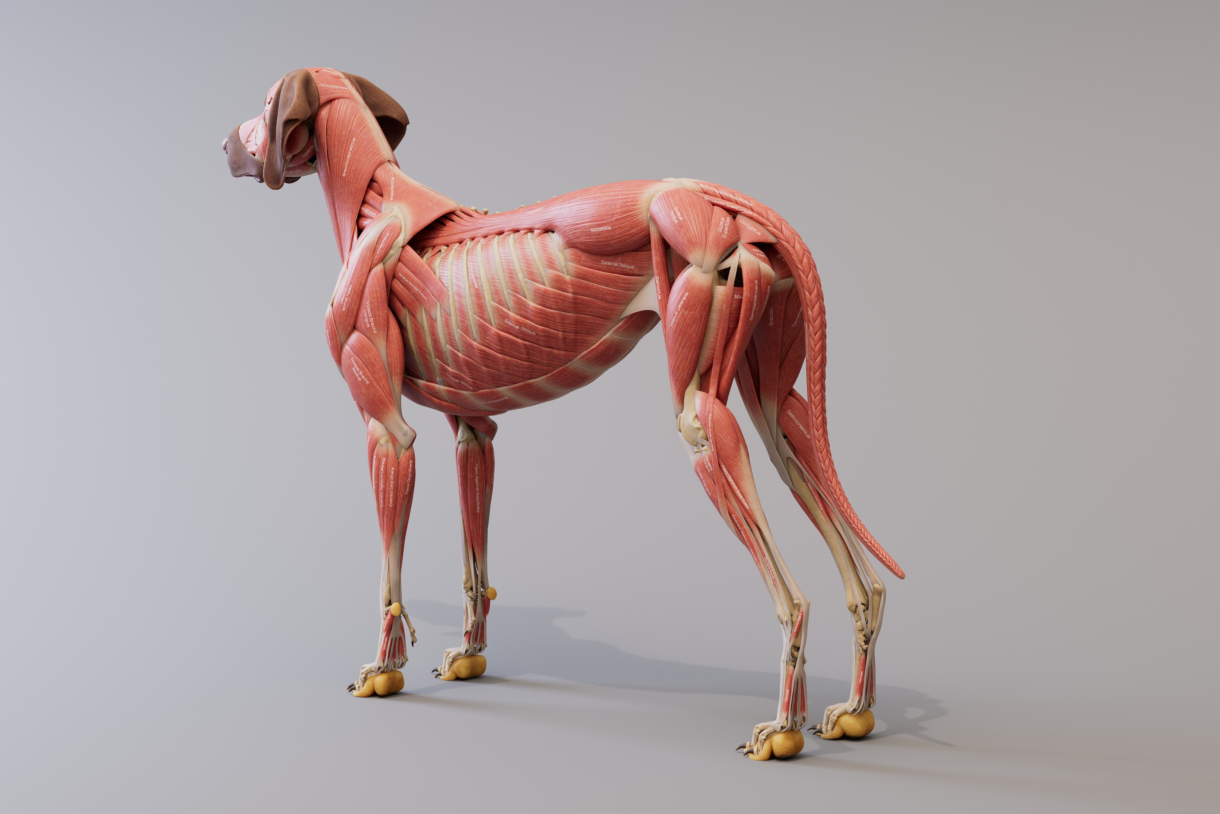 The skull, overall volume and proportions are based on the german shorthaired pointer breed. I wanted to have realstic muscle volume without exaggerating too much. It was quiet a laborious project. Though I also used it to learn maya and arnold.