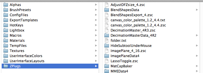 In the browser that opens, select the file “/APPLICATIONS/ZBRUSHOSX 4R4/ZStartup/ZPlugs/canvas_color_palette_1.2_4.4.txt” ← this is the source code