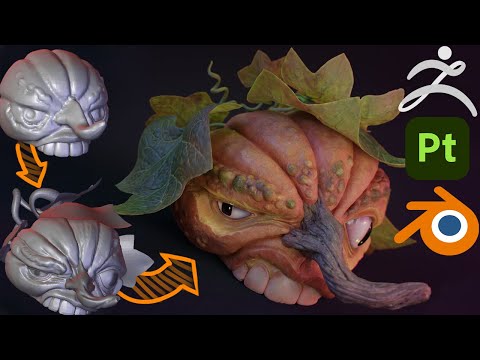 I started this pumpkin as a sketching exercise for a Zbrush class I was teaching at FutureGames, I created a bunch of thumbnails and did a quick instagram poll and refined one of the most voted ones, the color is mainly done using polypaint, added some additional details and maps with Substance 3D Painter. Rendered in Blender. I recorded the whole process