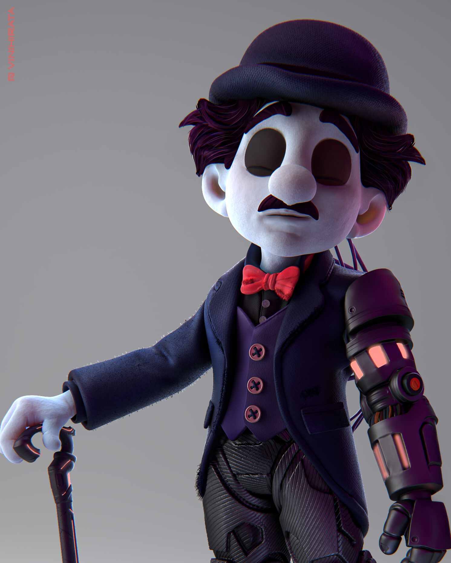 CHARLIE CHAPLIN CYBERPUNK STYLIZED CARTOON