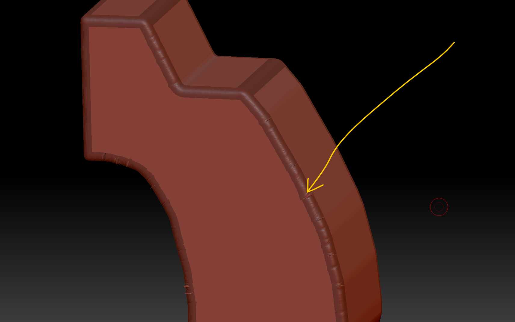 The Bevel Brushes can’t be used on the geometry, because of the shape, and the roundness.