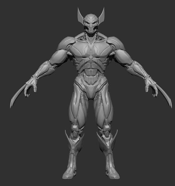 Then some refine, separated all piece by masking then, Close holes, dynamesh again and cleaning, adjust the shape, detailling for each piece. Mainly inspired by Michael Pavlovich workflow except i didn’t retopologized for cleanning my shapes, it’s all sculpting. Only the hands , claws and cylinders are made with subdiv modeling.