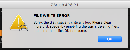 Sorry, the disk space is critically low. Pleas clear more disk space… and cilck OK to resume”