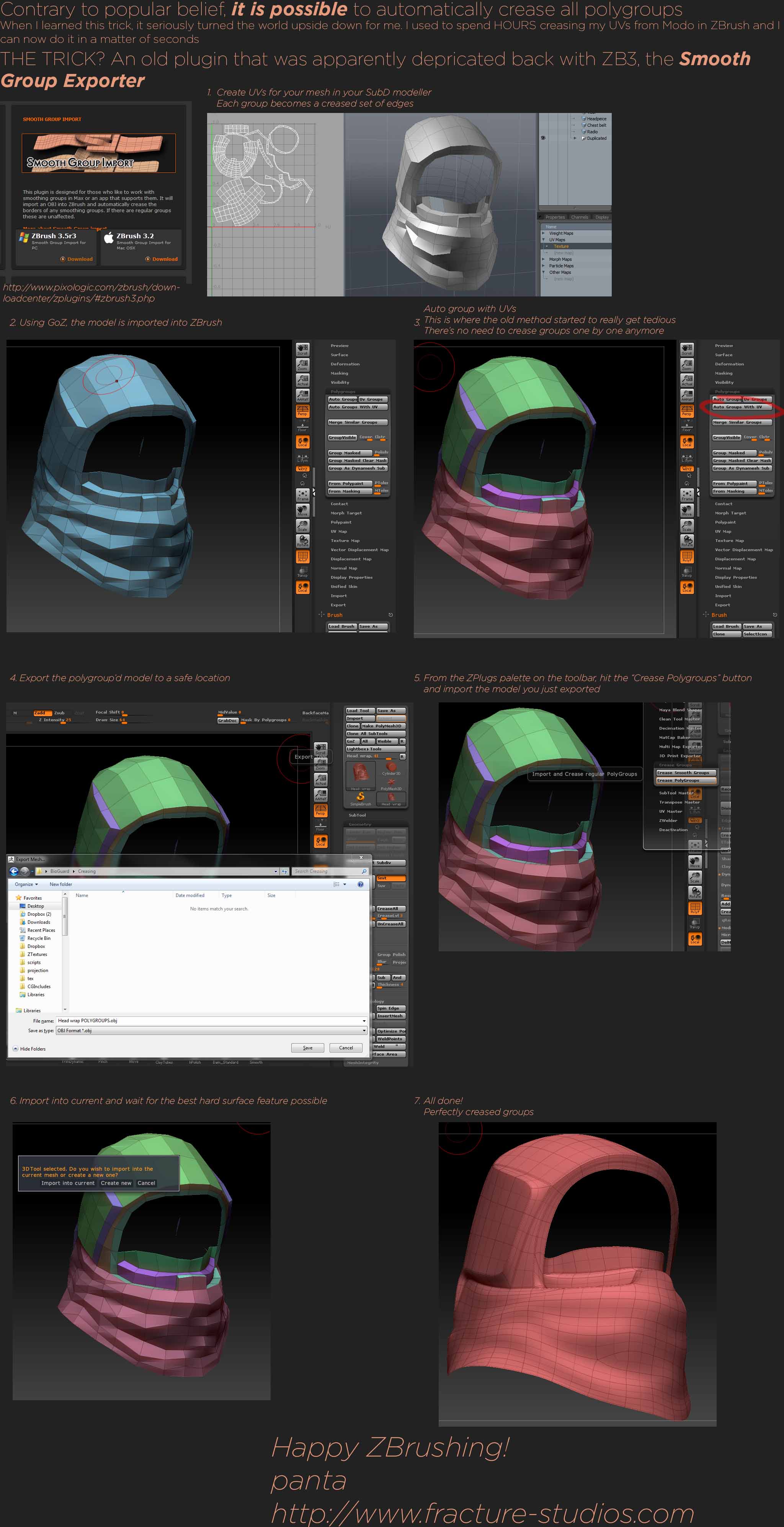 Hi, i wonder if there is a zscript that could cycle thru (hiding all other faces) every polygroup applying a crease command to each of them.