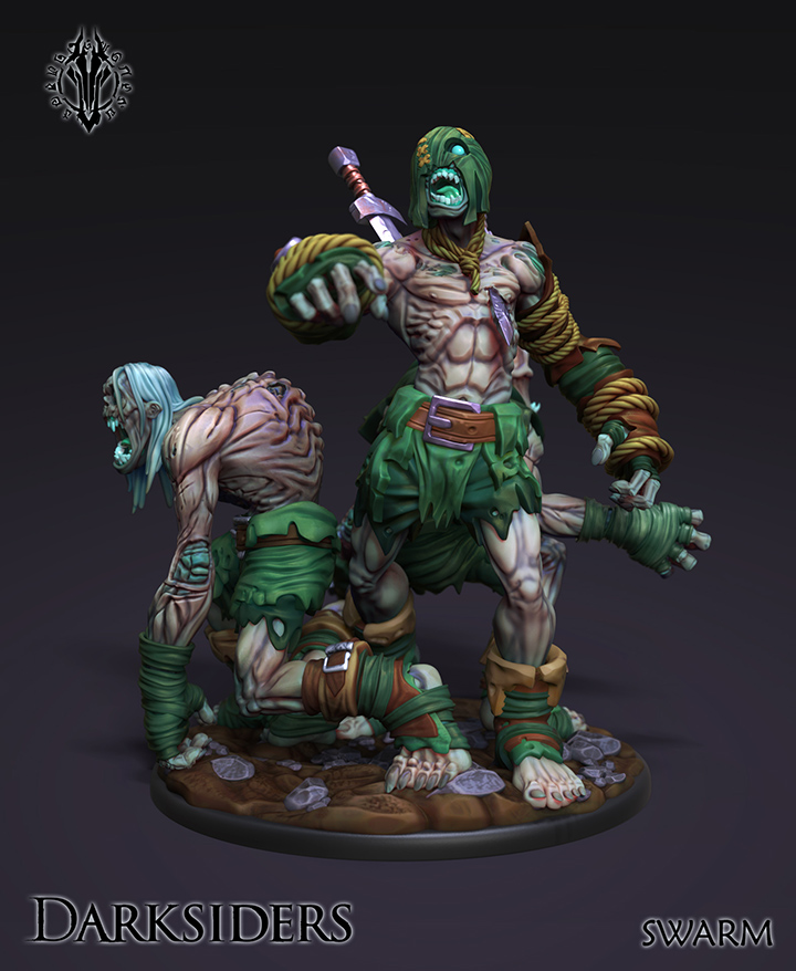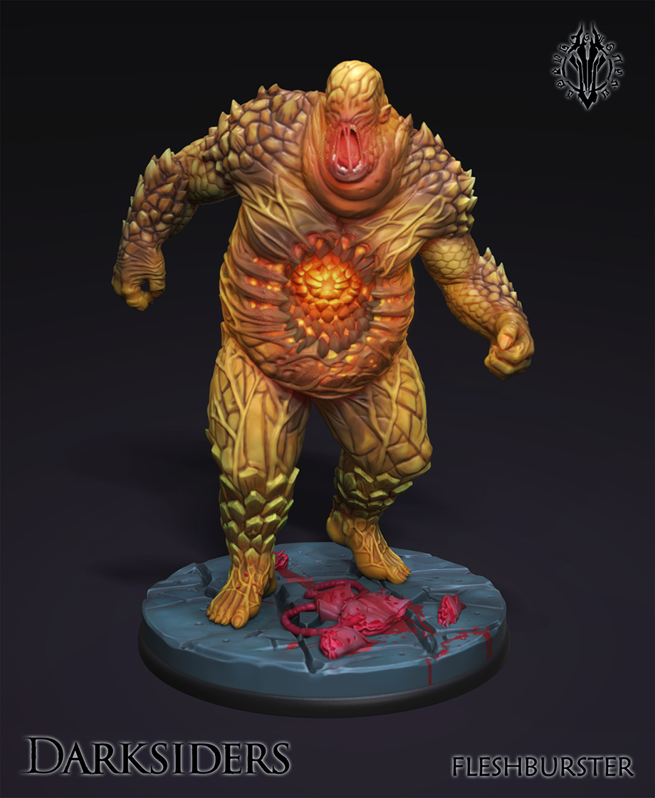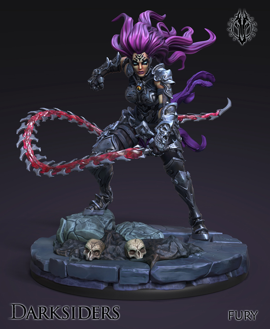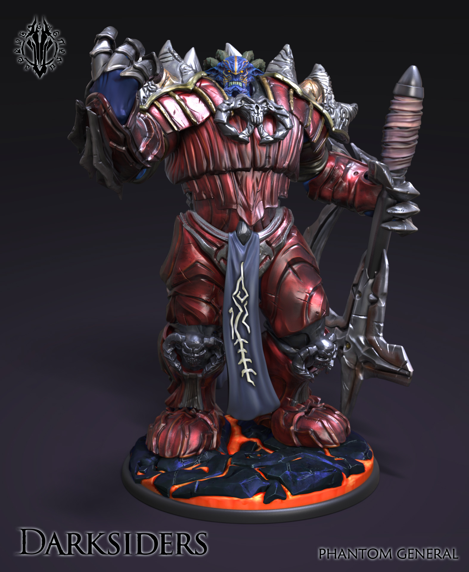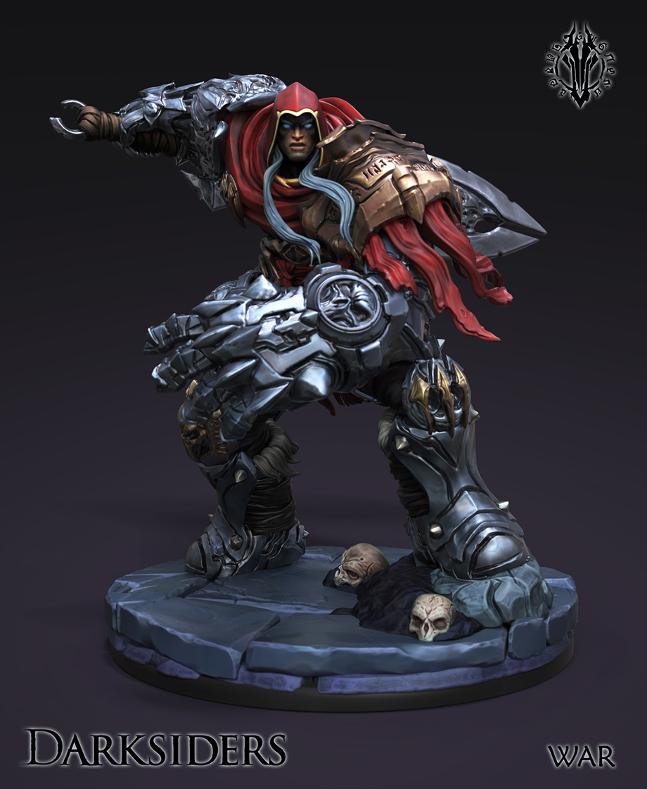 I was provided an old game resolution model for War with its textures, I used that to reconstruct my own T-pose mesh for the miniature based on the low poly model by the team at Vigil. For strife I only had to do posing, print prep, and reconstruction of his guns based on assets by the team at Gunfire. I did that for both the Strife miniature, and the collectible statue. Original high res model of Strife was made by Brian Jones.