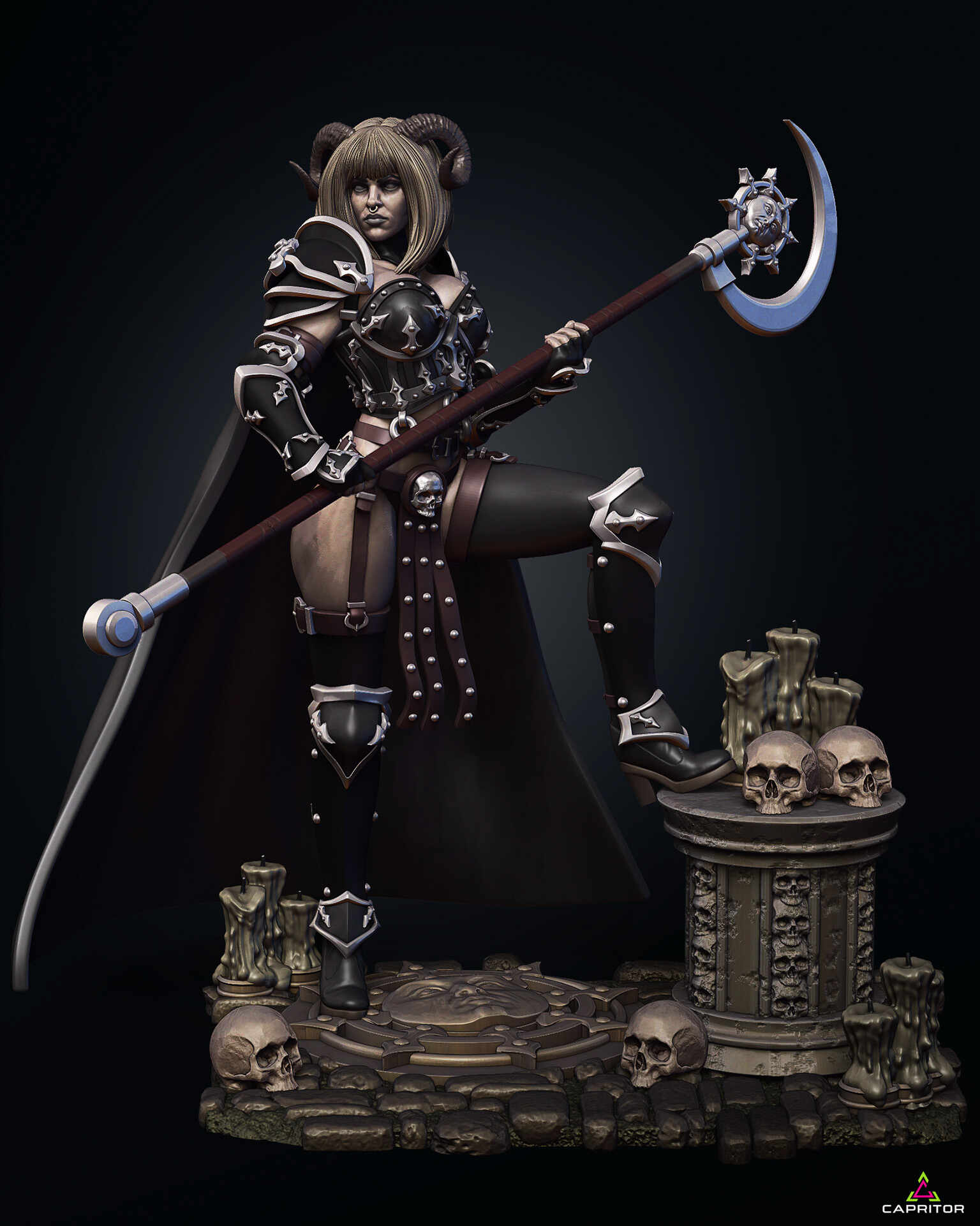 Hello, we want to share our 75mm miniature created entirely in Zbrush, “Demonika.”