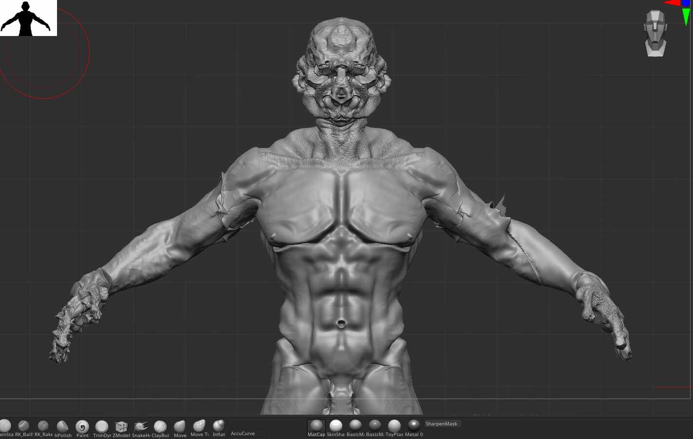 If you have multiple subtools that you would like to unify, you can also use the “ZBrush Scale Unify” and “Center Subtools to World” option in Scale Master. In this case the Unify function is split into two parts–one to scale, one to auto center–but it will work on all subtools and keep their size/position relation to each other. Again, this should be used on the actual Tool, not on a Tpose mesh.