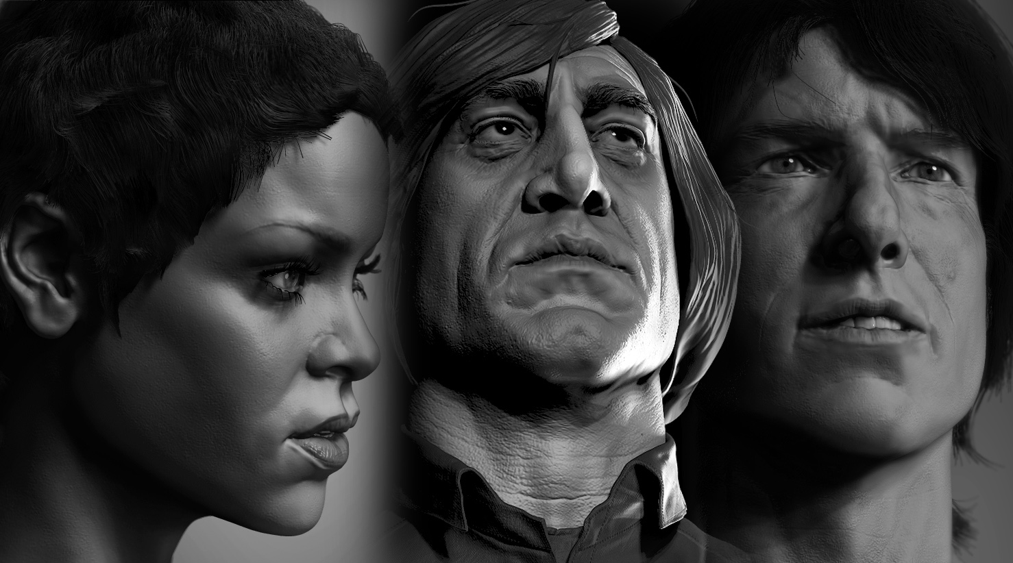 A few more portraits created in the same manner as Rihanna’s (recording of the process on previous page).