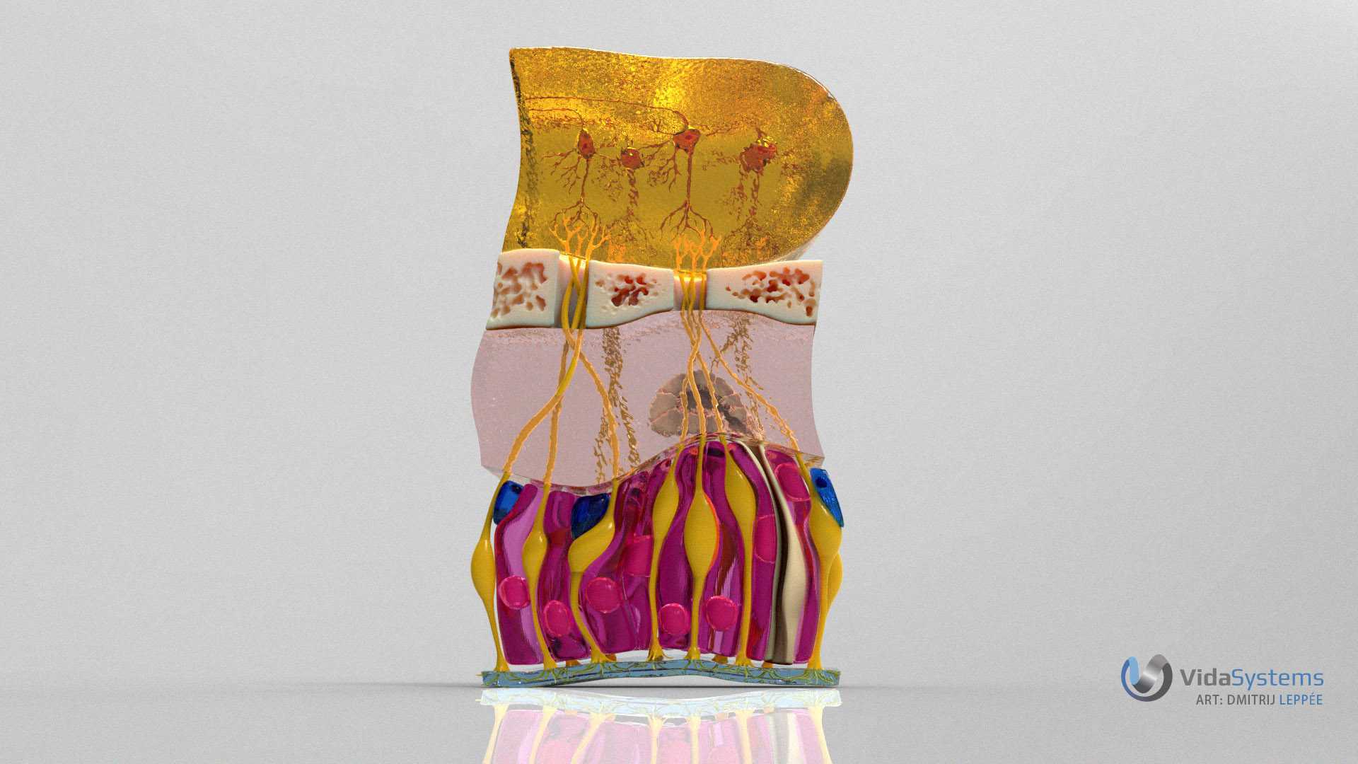 This is a recent piece, an olfactory epithelium. I usually wouldn’t publish this kind of work as it might not be as interesting as some other more popular subjects, but I had so much fun doing this one - more than anything else in recent time, and contrived even more workflows in ZBrush in executing this scene, so when a work includes problem solving it’s heaven for me
