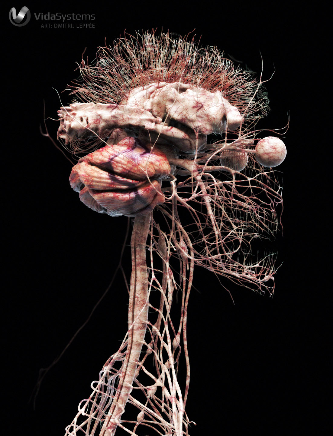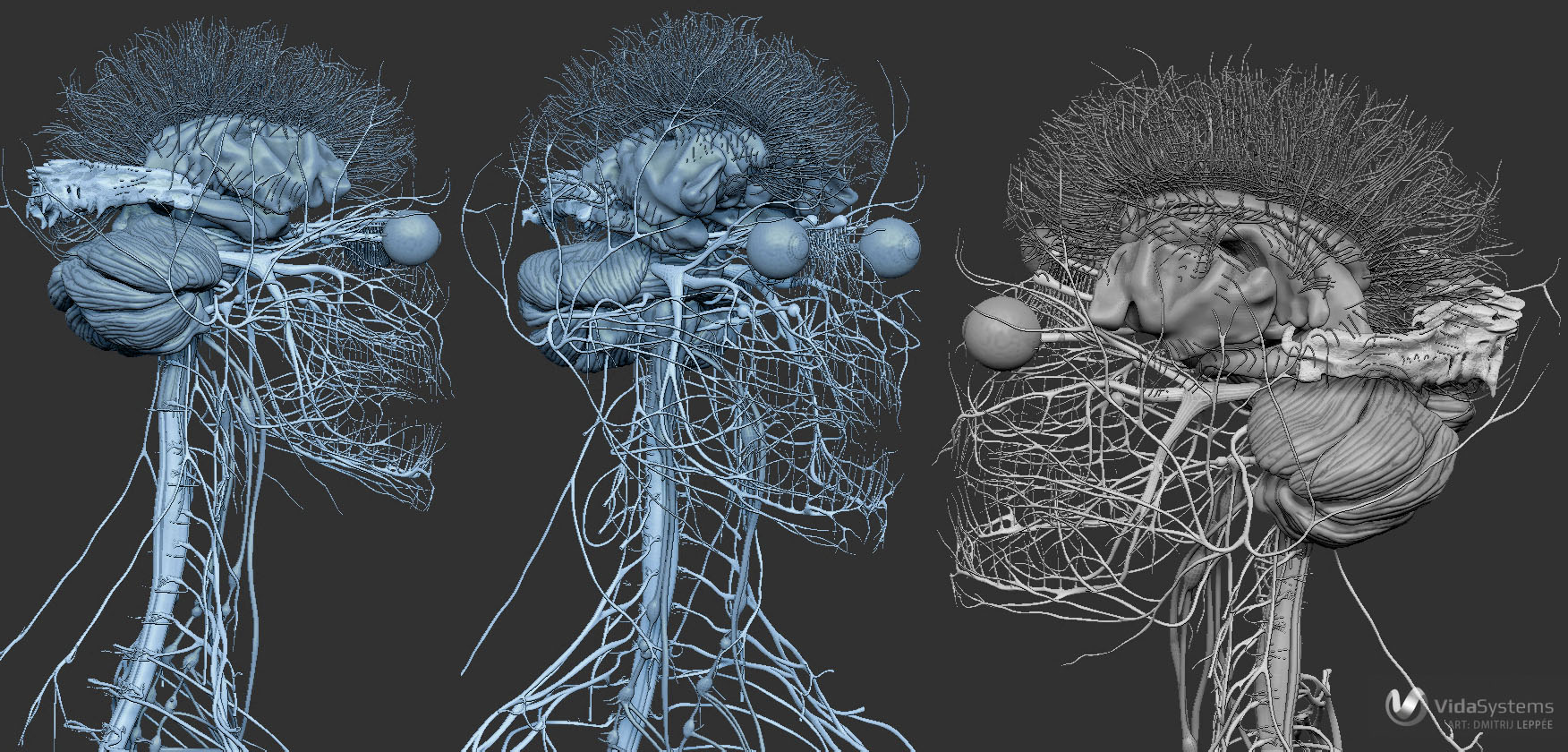 Human nervous system, updated over a period of three years at Vida Systems. Modeling in ZBrush, with renders in Keyshot.