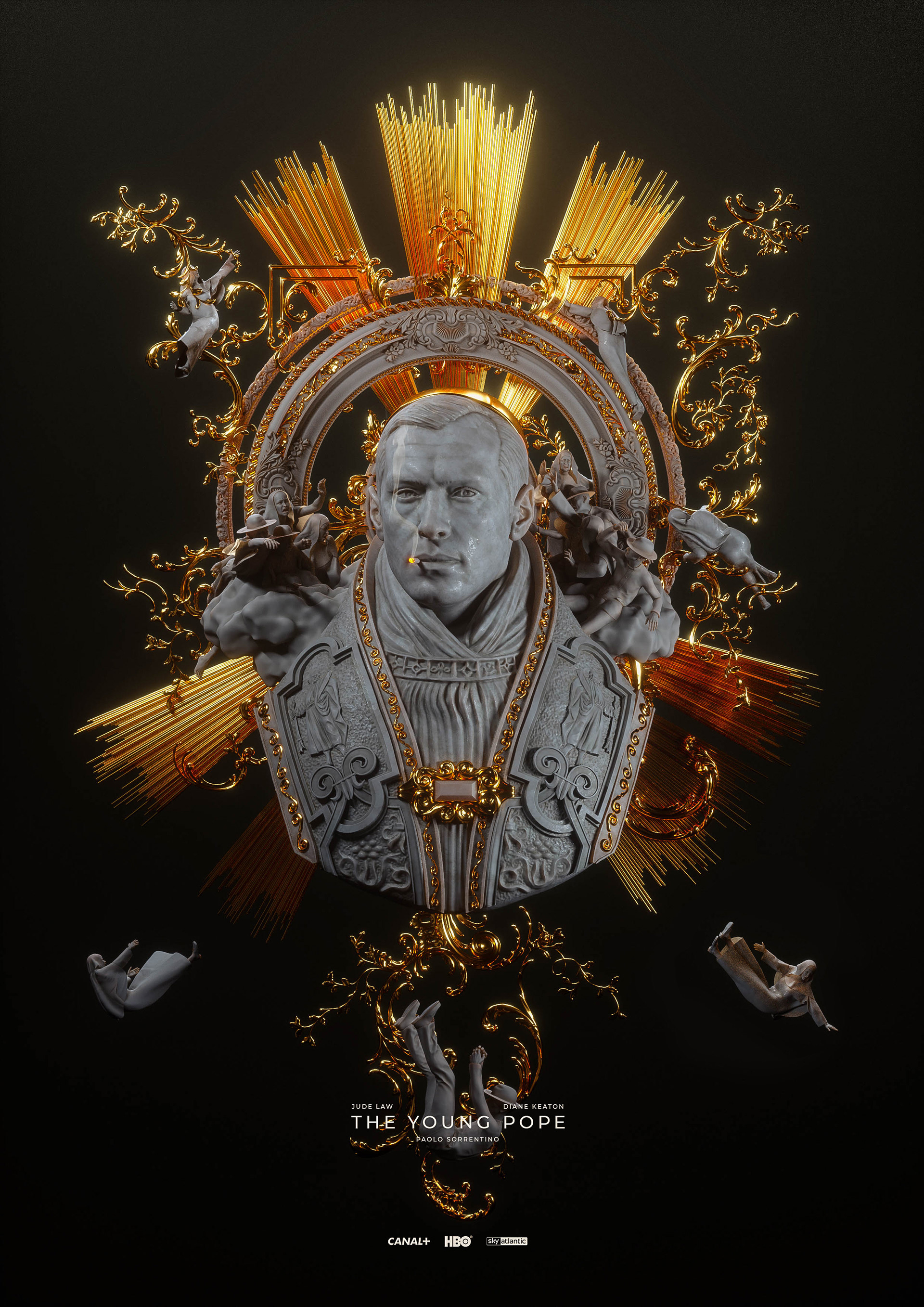 A collaboration with Luke James, who used my old Jude Law portrait as a center piece to create this beautiful homage to The Young Pope.
