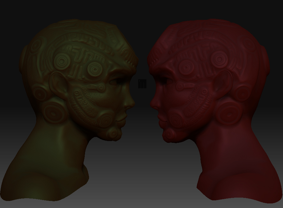 Here’s a litle text tutorial of this one, if anyones interested: basemesh 3ds max tube, zbrush standard brush freehand + alpha 10 (star alpha) to block the “vines” shapes along the ring curve, and again standard brush with no alpha to create the cavities along the ring and also define the shapes litte more. I really really like thhe star alpha combined with freehand mode, and use it extensively.