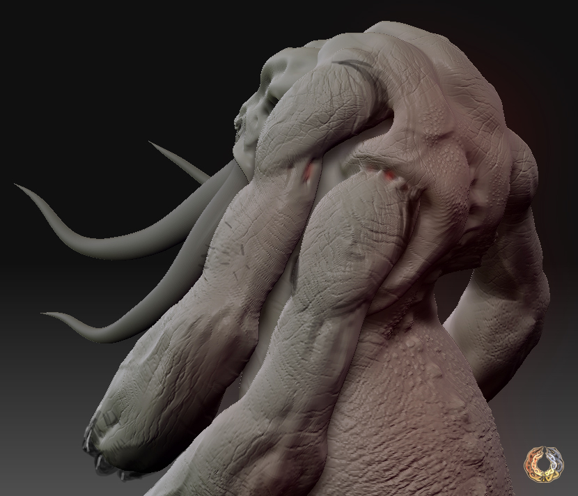 Blocking in the shapes of the body, the arms are a bit skinny perhaps. I’ve decided that I’ll do a traped in the gossamer ganeša, so I won’t do the legs. See you when the anatomy is finished and with armour ideas. btw I’m not using symmetry for the body and doing each arm individually, I’ll explain why in the troubleshooting forum