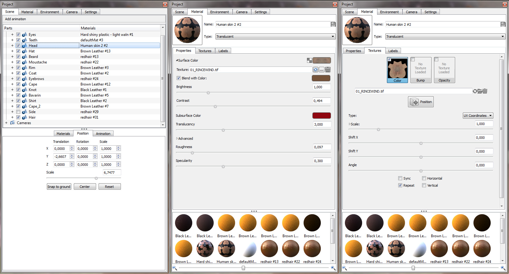 Here are the material settings for most pieces, and project and render settings. Depending on the size of the mesh, the settings might be changed.