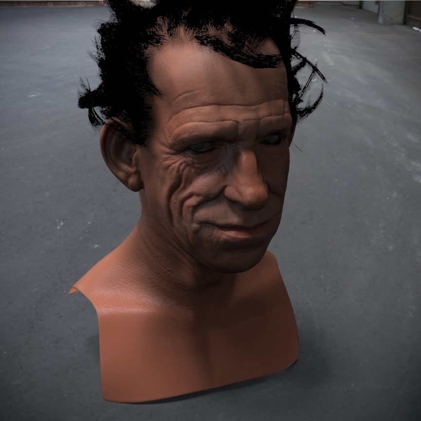 Hey, nice work on the head. I try to study anatomy a lot, and it would take quite an effort to make a head look that realistic in just three hours. I like how the light plays at the top of the head and subtly brings out the surface details in that region. Overall it looks very convincing, only the dimple in the chin looks a bit too exaggerated in that last render.