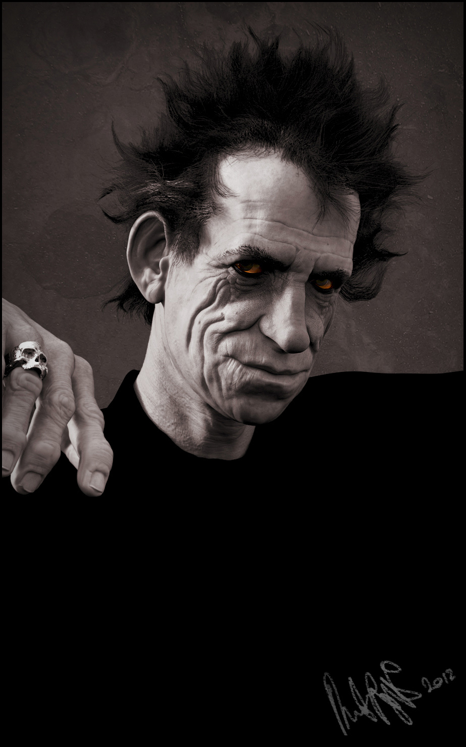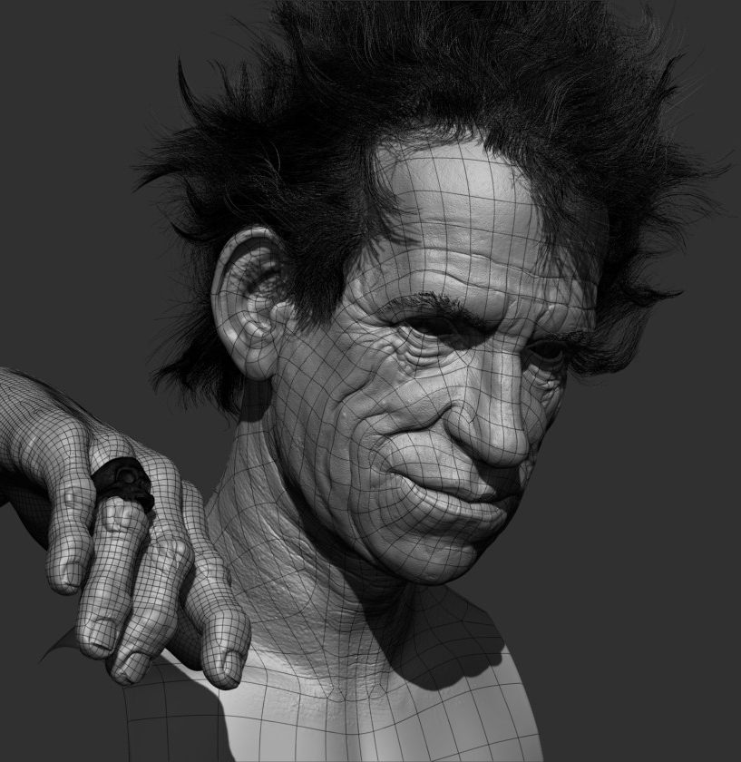 Thanks guys. Here’s the final Keith Richards, modeled and textured using Zbrush and rendered in Keyshot.