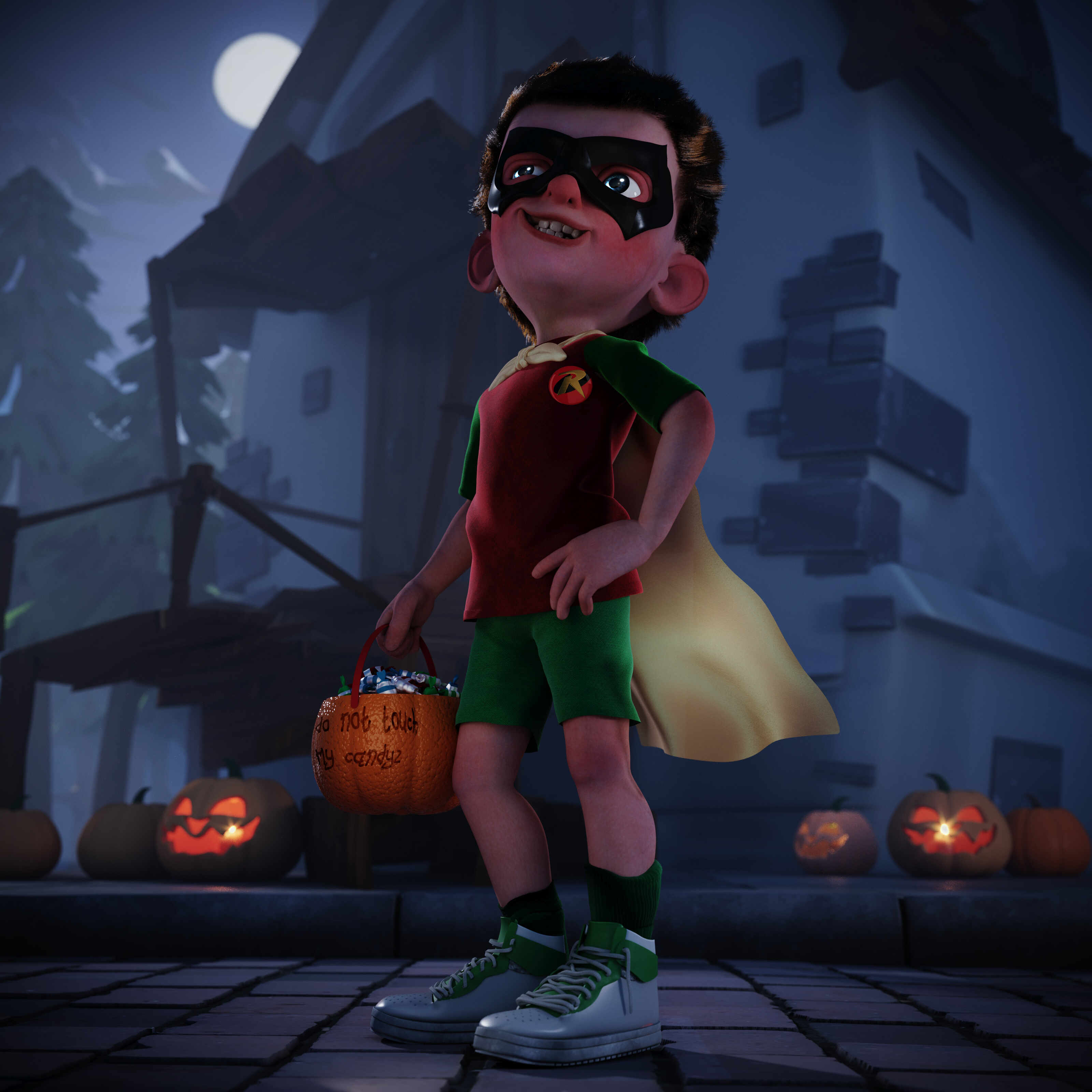 I wanted to created an image for Halloween so I decided to create that kid dressed up as Robin.