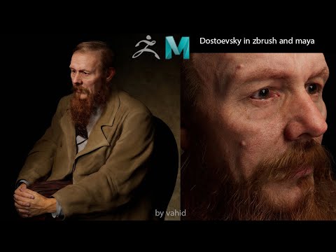 Fyodor Dostoevsky is done in zbrush and maya. All the tools and cloth done in zbrush. skin is mixed of xyz maps and zbrush dismap, skin pores done in mari ,hair is xgen ,rendered in arnold in maya.