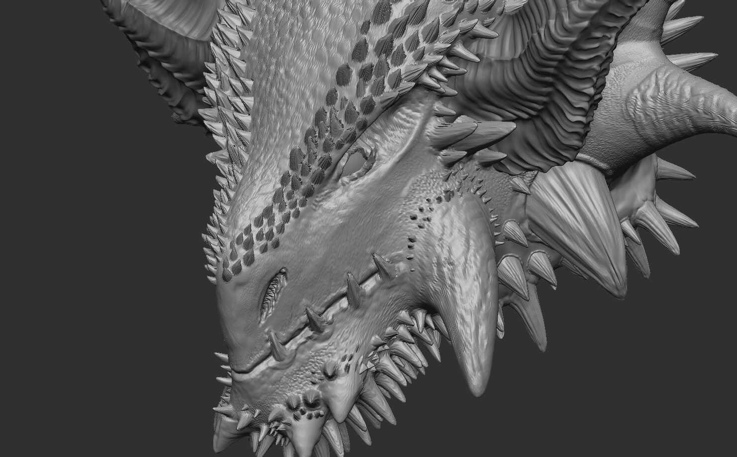 A basic dragon head, my first detailed sculpture in Zbrush.