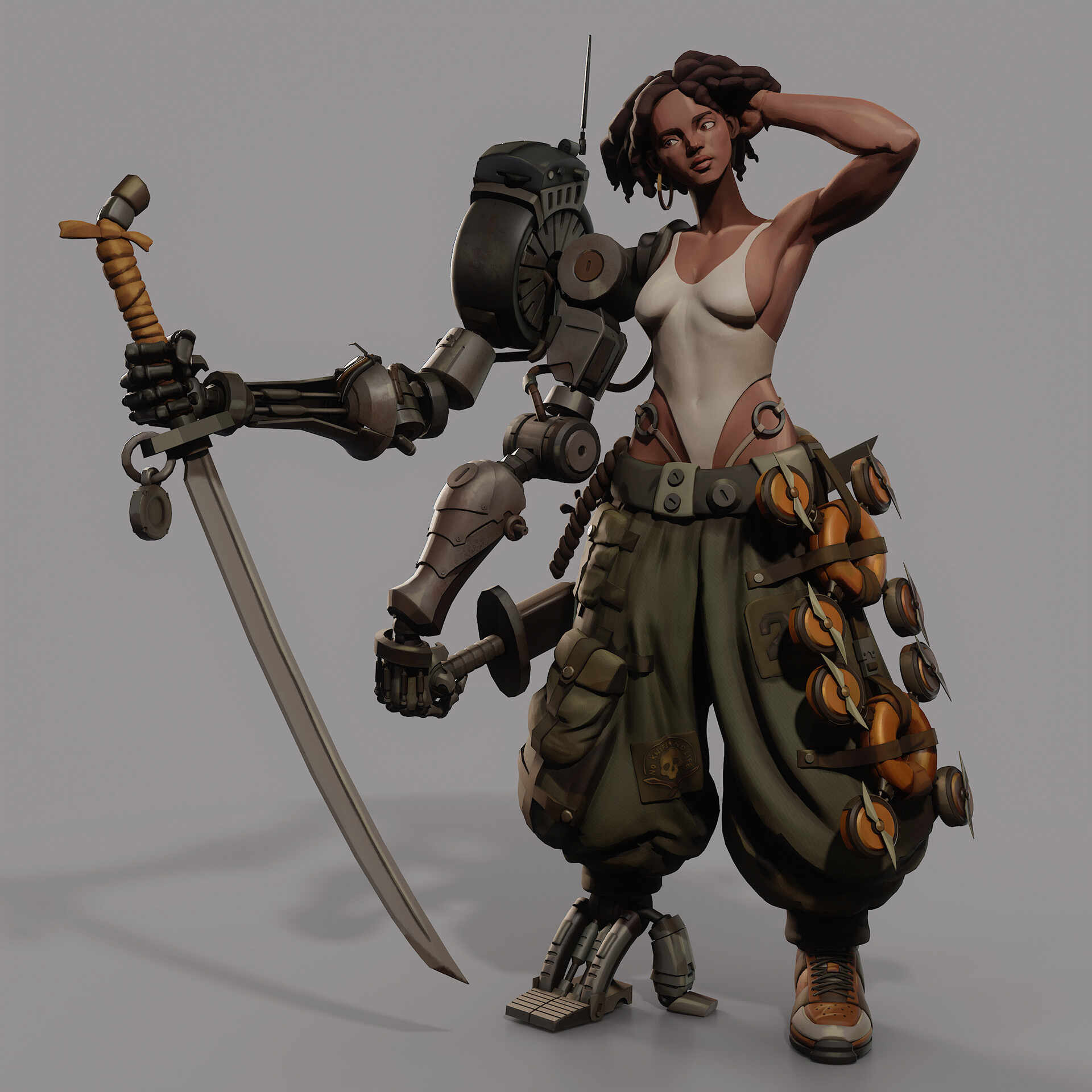 I love the original art by Seungho Lee and wanted to see how I could faithfully translate it into 3D. I took this project as an opportunity to learn about hand-painted texturing, something I’ve done sparingly in the past, and the way to use normal maps to try and give it more of a painterly look. I do think I could’ve gone all out in making it look even closer to the concept art, but for this project, I wanted to create a game-ready character using the concept art as a base for the style of this hypothetical game character. I hope you like it!