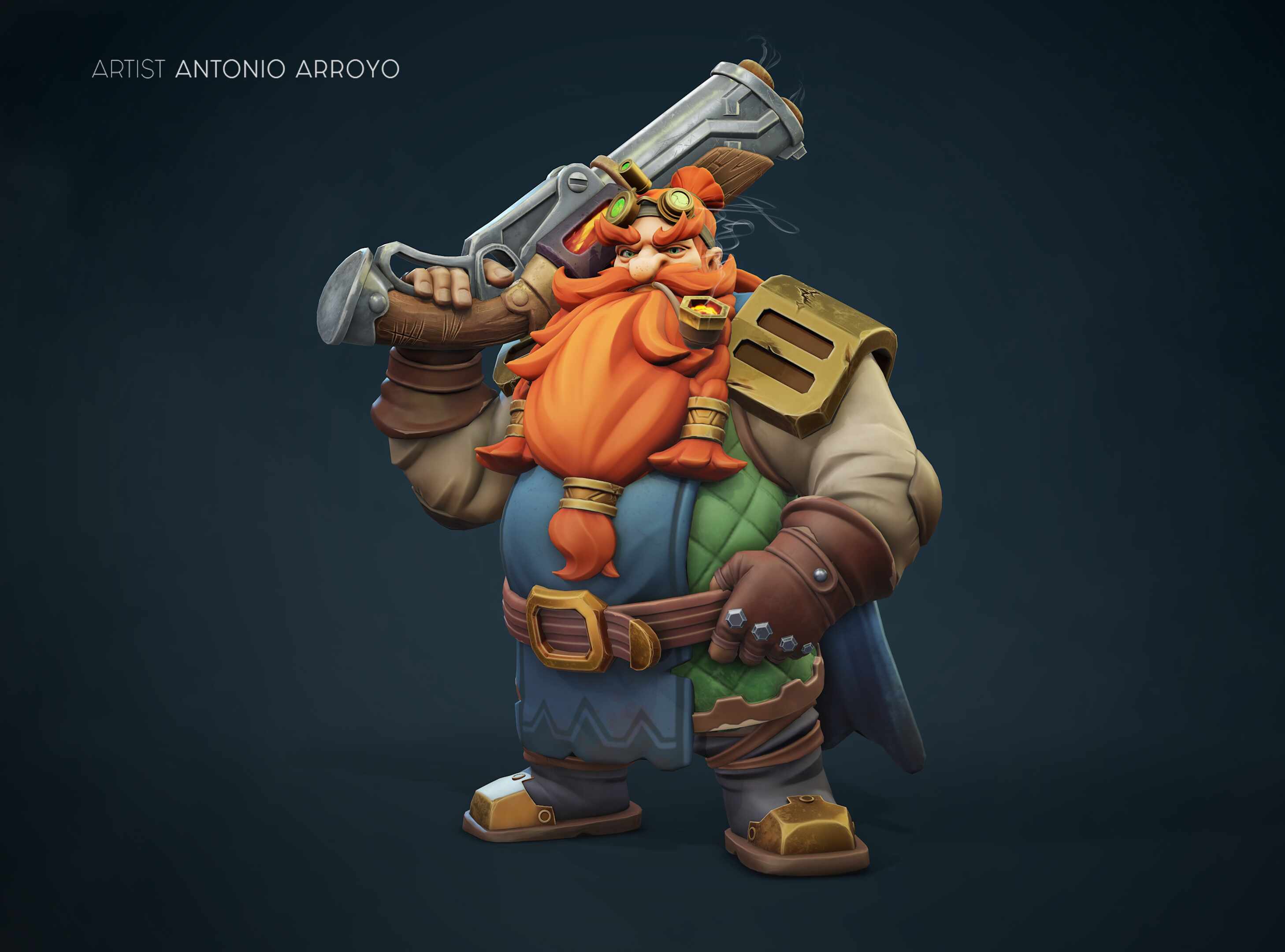 I want to show you this new work, this dwarf and his weapon with a stylized style.