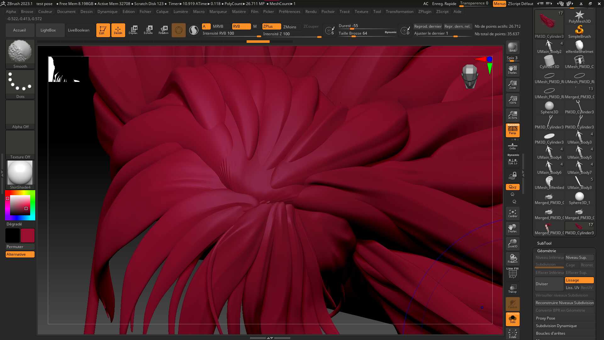 Once the form of your mesh is satisfactory, the highest detail potential in ZBrush is achieved with the traditional multi-resolution subdivision process where a mesh is subdivided up from lower-res, clean quad topology. Detail from one mesh can be transferred to a multi-resolution mesh using detail projection with one of the available methods.