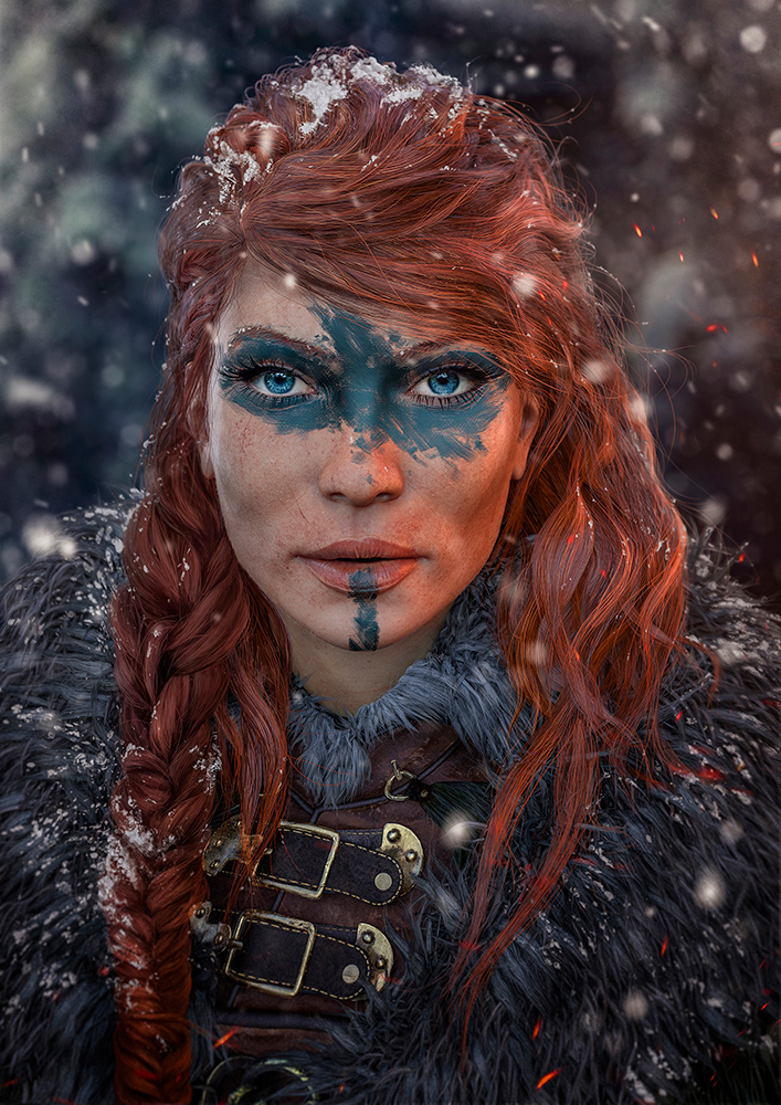 All modeling and posing done with ZBrush, textues with Substance Painter 2 and render with Keyshot. I used Photoshop for compositing and final details.