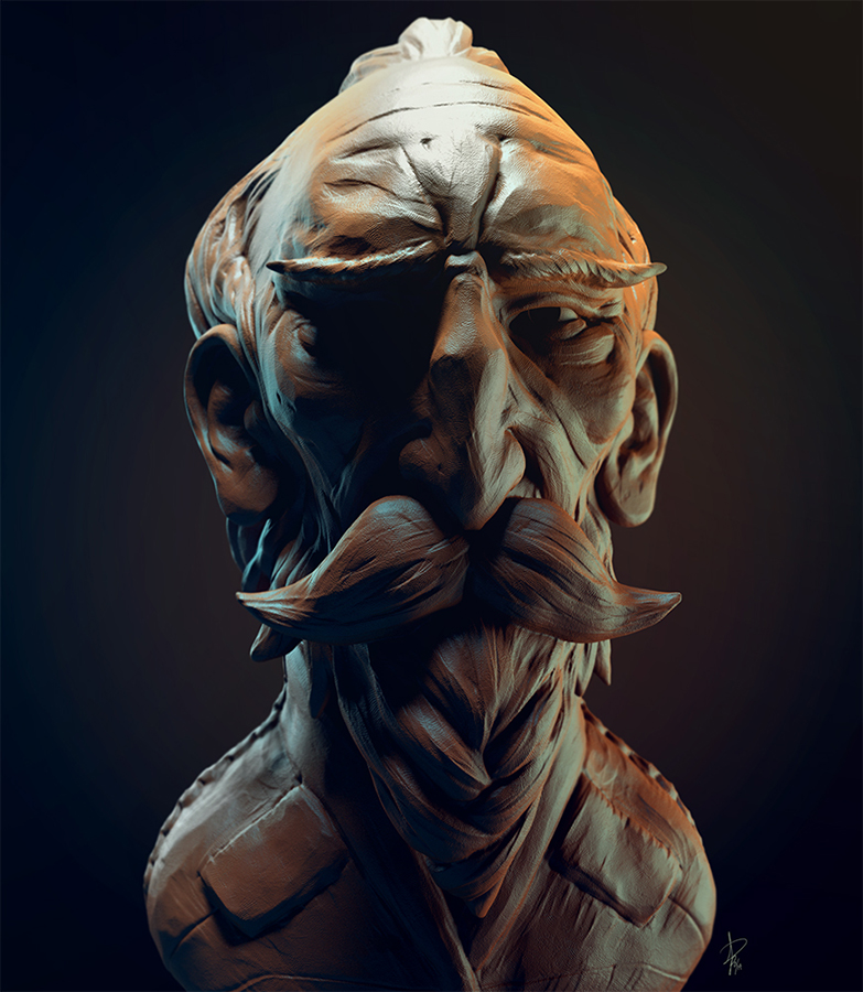 So I decided it to actually polish a bit more one of the clay sketches, and I had to start from the beginning that***8217;s why I chose The Sailor. So here is a render of this grumpy character that I am calling final for now.