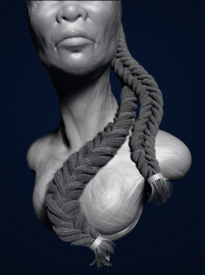 Hey guys! I’m starting a new project and I’m thinking to use some crazy intricate hairstyle for my character so I started to do some test using fibermesh. here is a plait style: