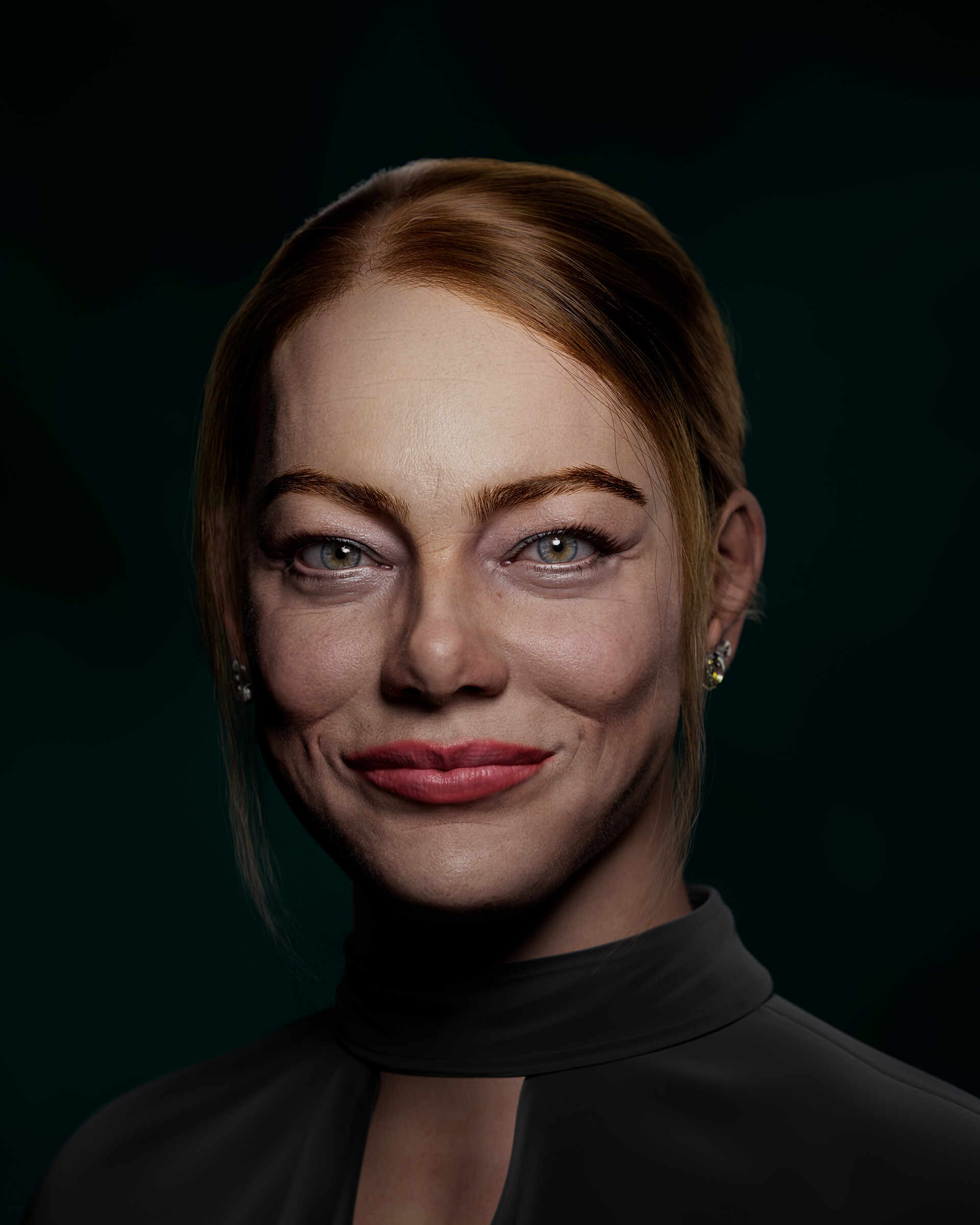 A 3D portrait of Emma Stone, sculpted and rendered with a focus on realism and subtle expression. I aimed to capture her distinctive features and personality through detailed sculpting in ZBrush, hand-painted textures in Substance Painter, and final rendering in Arnold. I tried to achieve a realistic yet artistic interpretation.