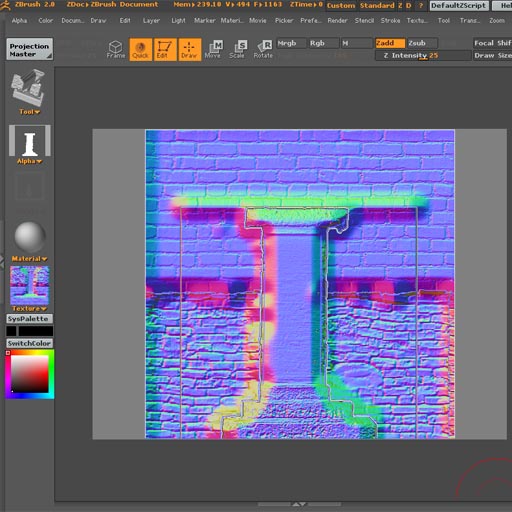 We will be adding one twist to a normal Projection Master routine by using a Stencil within Projection Master to mask out the shape of a doorway so that our brick’s don’t model over the top of it.