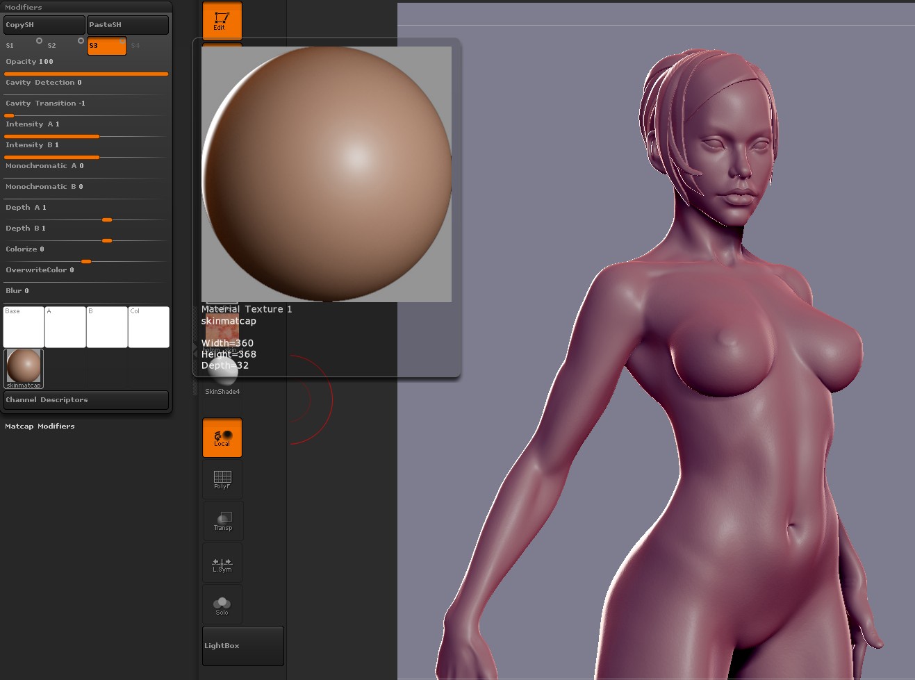 This turned out really well. Was this rendered in ZBrush? I am having trouble generating reasonable SSS renders on my models skin. I love this models colors, did you paint them in another program, and if you can answer one last question, how do you get the backlight?