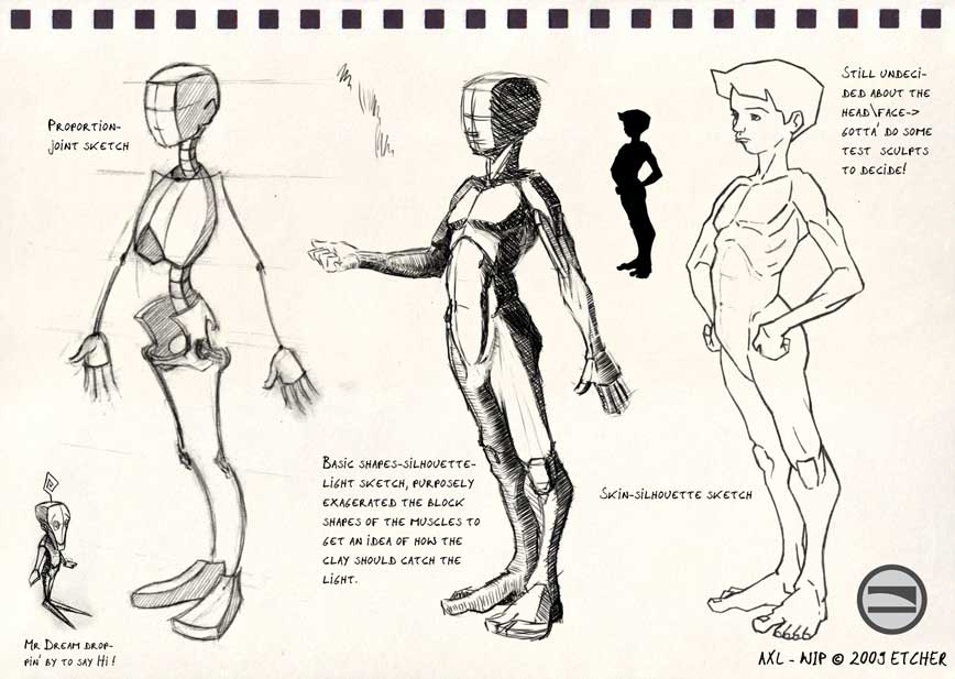 Spaceboy 412: Thanks for taking the time to look at my sketchbook and comment. Glad you like the sketches. About the feet: yeah, they are supposed to be that big. But, you’re the second person to comment on that (my cousin also told me he liked the “kid with the big feet”), so I might wanna’ check their size when sculpting.